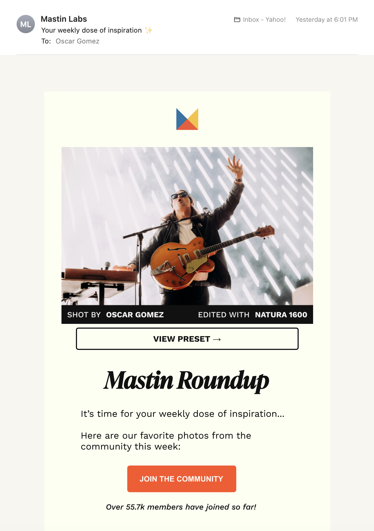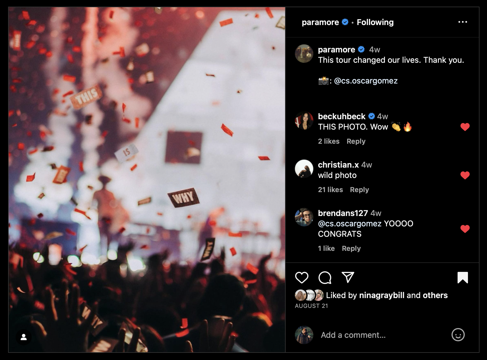 Paramore tour “thank you” post (click image to view on Instagram) Lee Malia of Bring Me The Horizon image after LA show (click image to view on Instagram) Mastin Labs header in weekly e-mail.